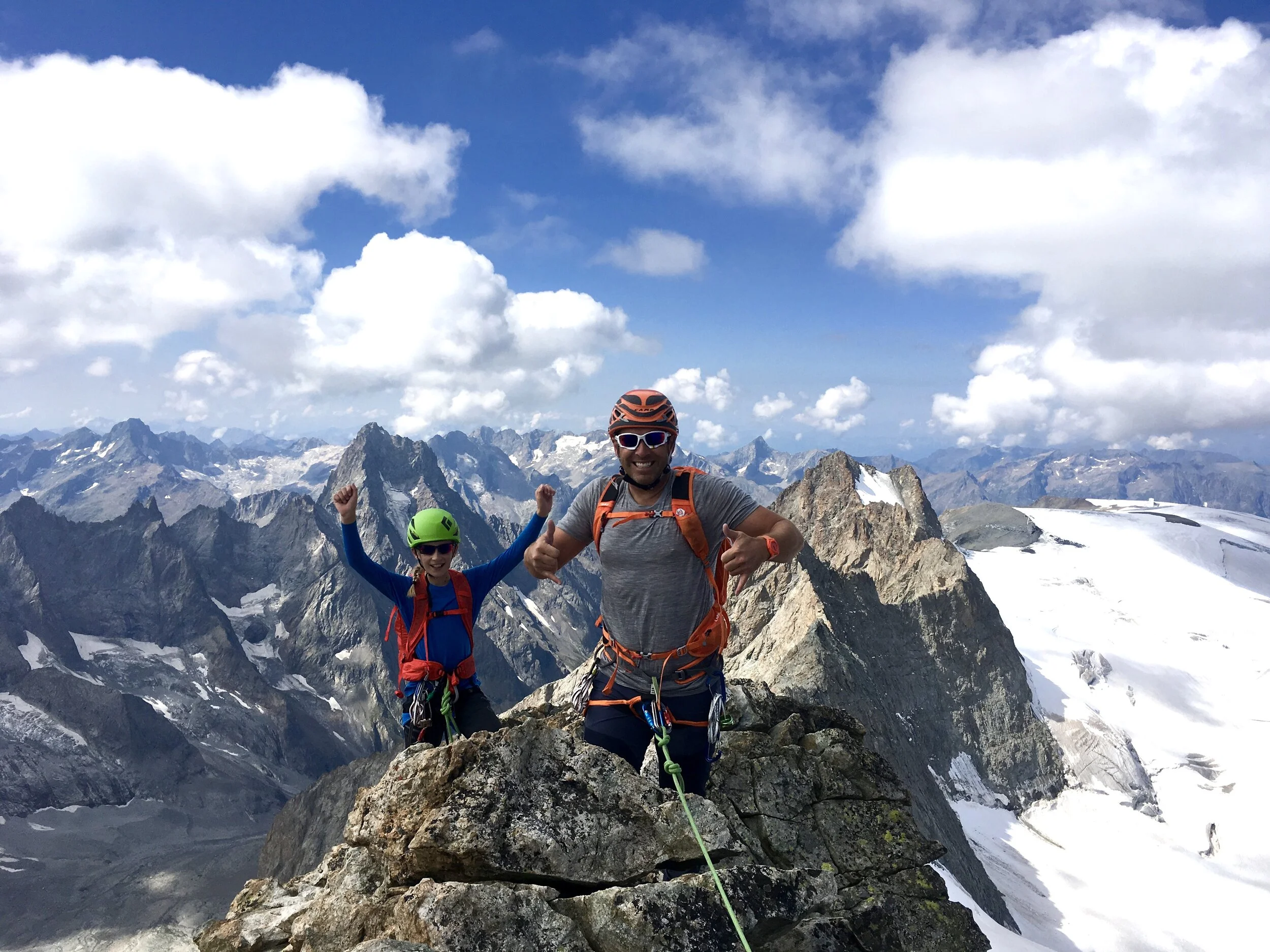 The main lift in La Grave is called the Télépherique. We will take this up to 3200m/10,500ft where we will arrive at the Glacier de la Girose. While touring the glacier, we will walk over crevasses, crampon on dry ice, and learn the basics of glaciology and glacier rope travel. If the group has the appropriate level, we will attempt to summit the Rateau Ouest (3769m/12,365ft) or the Pic de La Grave (3667m/12,030ft), both spectacular alpine peaks that involve steeper snow and an ideal first alpine rock ridge.