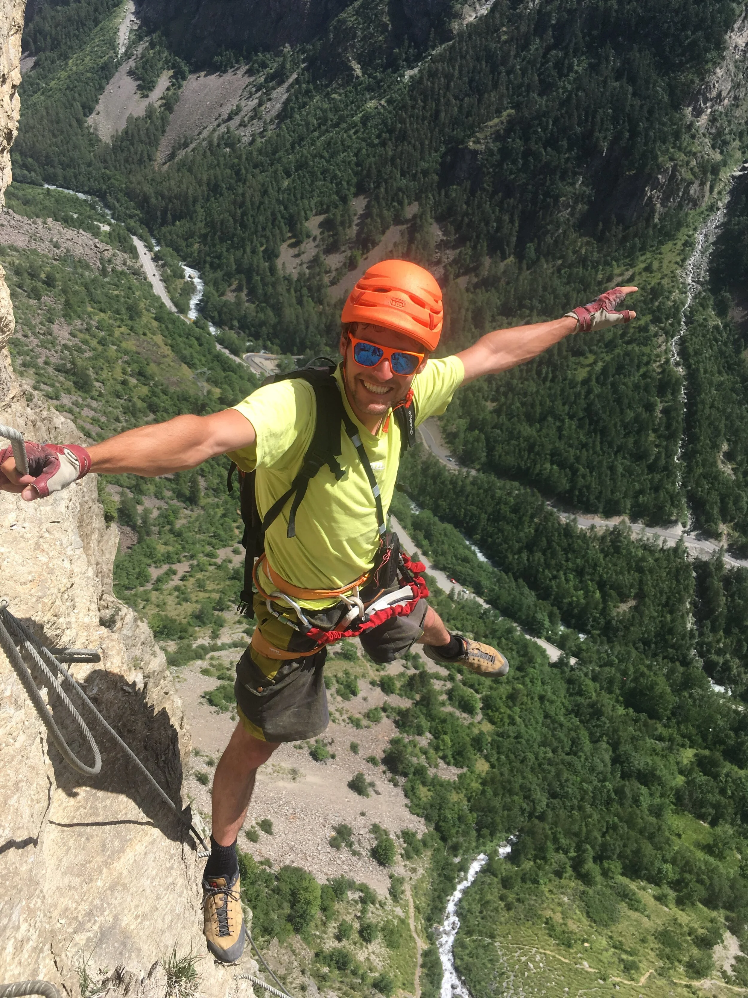 Italian for “iron path,” this activity dates back to the First World War, when several pathways of iron were built on cliff-sides in the Dolomites to help move troops through steep mountainous terrain. No via ferrata is the same, but each one is a combination of cables, ladders, and bars bolted onto a mountain side. While clipping yourself to its safety cables, you remain secure while reaching great and exposed heights. In La Grave, we have one just next to a waterfall. After topping out we will hike just a bit farther to the Refuge des Clots for a nice late lunch before we hike back to the car.